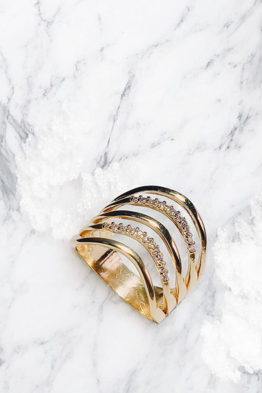 Apresentamos o anel que combina o glamour do folheado a ouro com um design contemporâneo e cheio de luz. O Anel de Tiras Cravejado é a peça chave para quem busca um acessório marcante, que valoriza a elegância e a sofisticação do seu dia a dia ou em ocasiões especiais.
