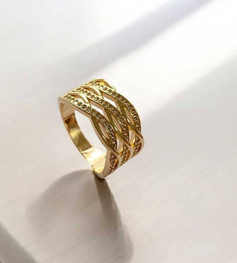 O Anel Trançado Cravejado em Zircônias Folheado a Ouro 18K é uma verdadeira obra de arte para os seus dedos. Esta peça combina um design sofisticado com o brilho intenso e contínuo das zircônias.