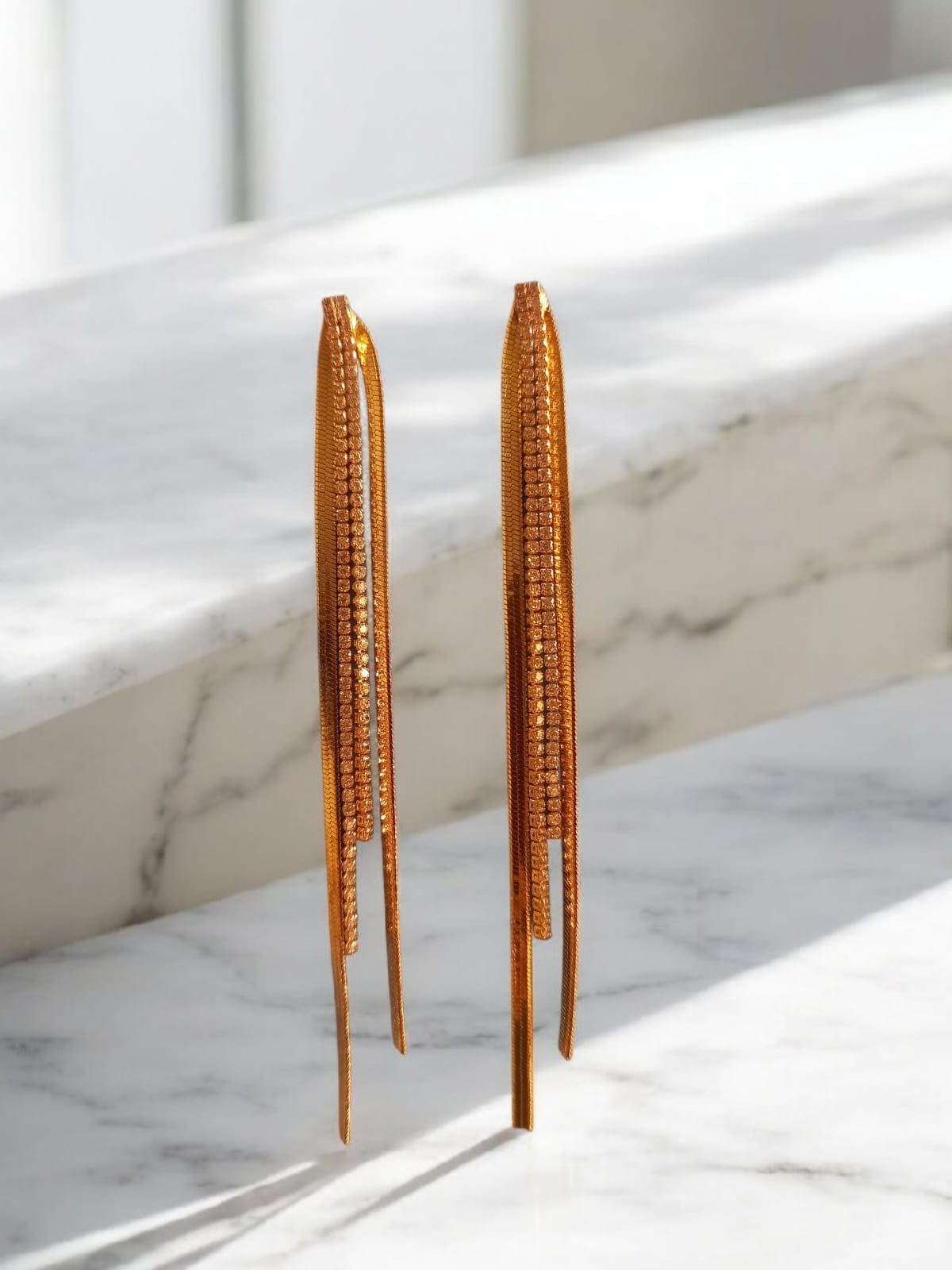 Com um formato que remete a uma malha lisa (ou retorcida), o brinco cria um efeito visual de metal líquido, capturando a luz em cada ângulo. É a escolha perfeita para quem busca um acessório minimalista, mas com alto impacto visual.