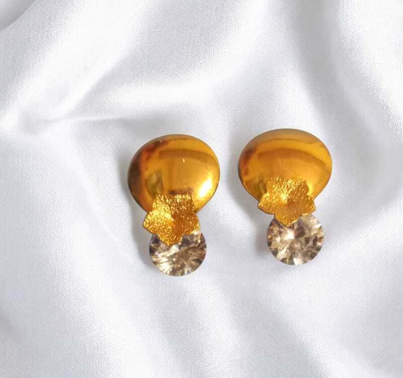 A composição da esfera com o charme da flor cria um contraste visual incrível, unindo a tendência geométrica com a feminilidade.