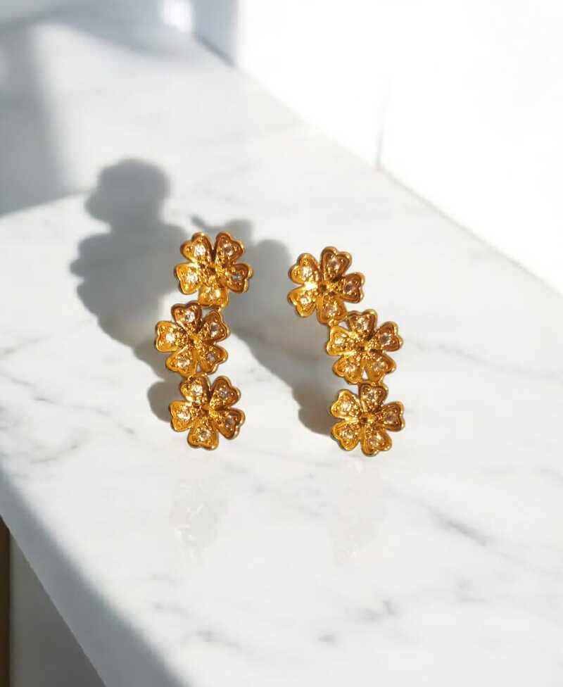 Transforme seu visual com uma peça que está na vanguarda da moda! Nosso Ear Cuff 3 Flores Folheado a Ouro 18K é a escolha perfeita para quem busca sofisticação, modernidade e um toque de delicadeza floral.