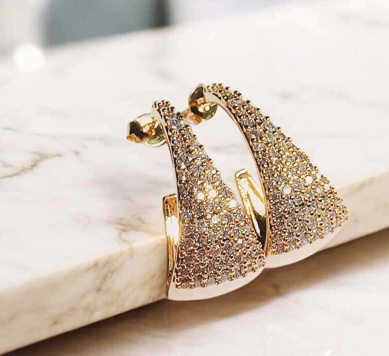 Apresentamos o acessório perfeito para quem ama um brilho luxuoso e marcante. Este brinco cravejado é uma verdadeira chuva de luz, ideal para adicionar glamour e sofisticação imediata a qualquer visual.