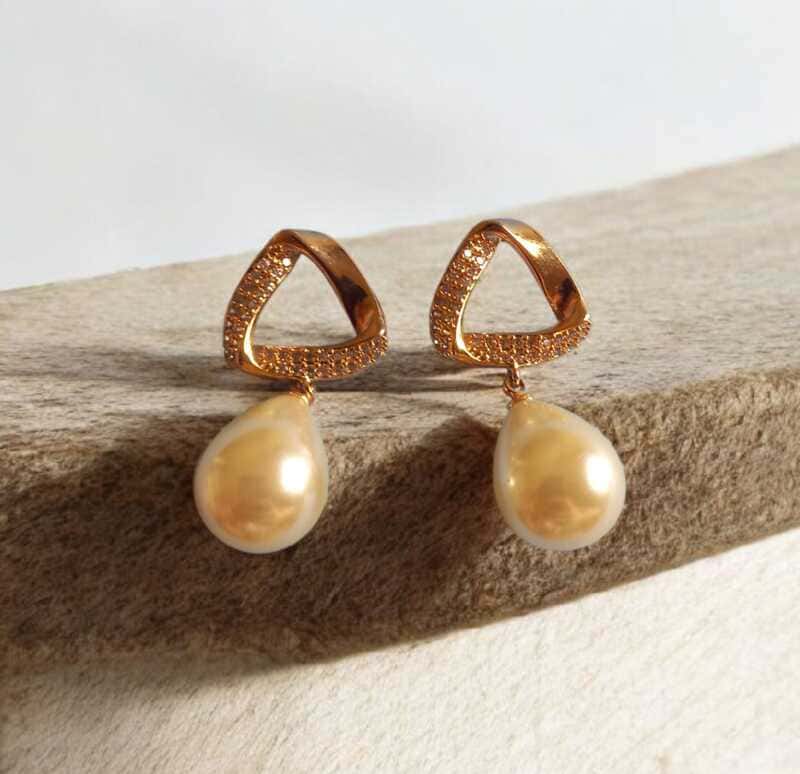 O Brinco Triângulo Cravejado com Pérola é a união perfeita entre o design moderno e o clássico atemporal. A base, em formato triangular, é totalmente cravejada em zircônias para um brilho contemporâneo, enquanto o toque final é dado por uma pérola shell que pende suavemente, adicionando movimento e sofisticação.