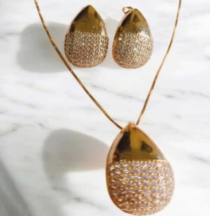 Deixe sua elegância brilhar! O Conjunto Gota Cravejada é a definição de sofisticação atemporal. Com um design em formato de gota totalmente cravejado com zircônias de alto brilho, este conjunto de brinco e corrente é a peça perfeita para iluminar seu rosto e adicionar um toque de luxo a qualquer visual. Folheado a Ouro 18K, ele garante o esplendor e a durabilidade que você merece.